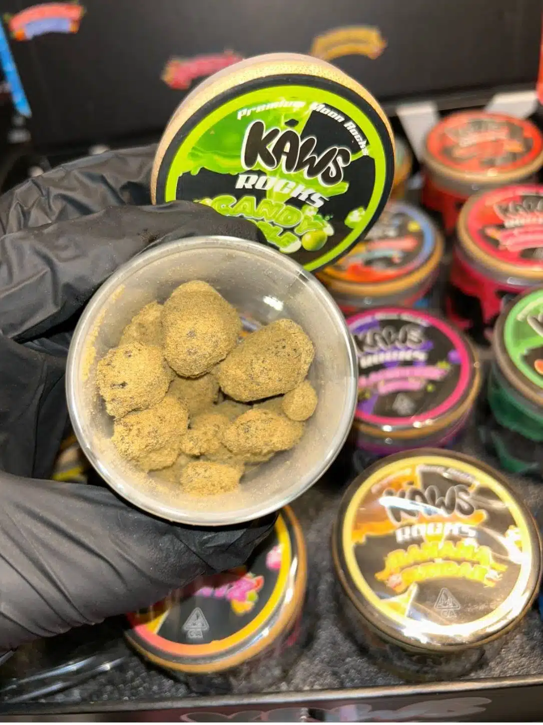 KAWS is an exclusive and incredibly potent THC moonrocks product that redefines the cannabis experience for seasoned users. This premium cannabis creation is designed to take your high to the next level. It is made from the finest quality buds, rolled in high-quality THC concentrate, and then coated in a layer of potent kief, delivering an unforgettable and powerful high that keeps you coming back for more. KAWS promises a unique cannabis experience that cannot be matched. It is best enjoyed by those who are ready to experience a new level of euphoria and relaxation.